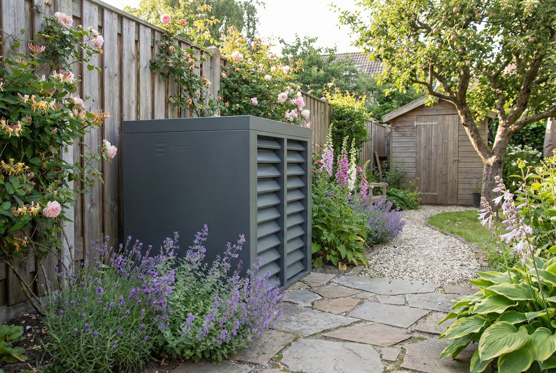 De Verstil Box is een hoogwaardige, geluidsdempende omkasting voor vrijstaande warmtepompen. Het ontwerp reduceert het geluid van je installatie aanzienlijk en zorgt ervoor dat je tuin of gevel een strakke en rustige uitstraling krijgt.